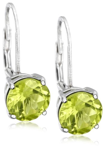 These beautiful peridot leverback earrings deserve a spot in your collection. Mounted in four-prong basket settings of sterling silver are 8mm faceted rounds of light green peridot, August's birthstone. The gemstones rest just below the earlobe where they catch the light and frame the face beautifully. The earrings are completed with curved ear wires and secure leverback closures, both made from sterling silver.